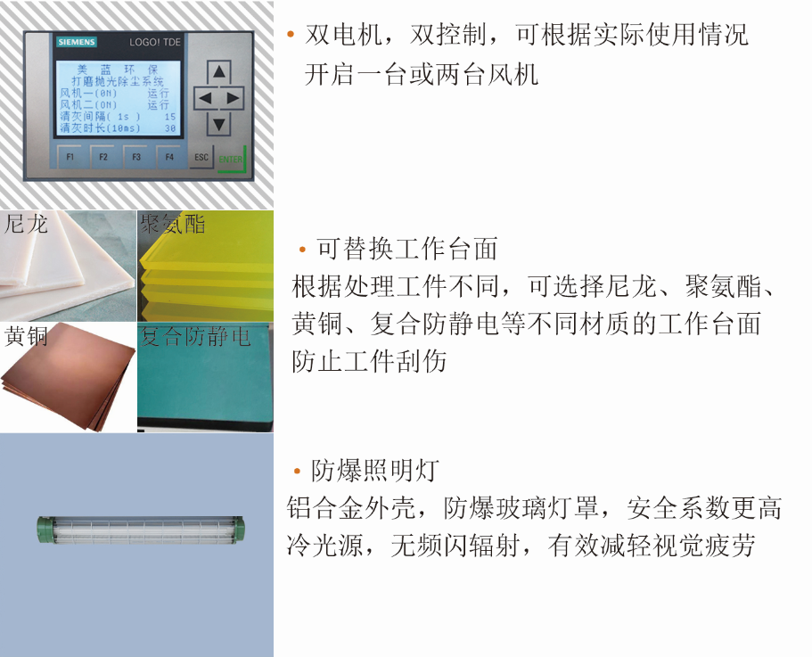 活動打磨臺 :適用于小工件,平面工件 打磨拋光雕刻除塵,側吸風與臺面下吸風相結合。