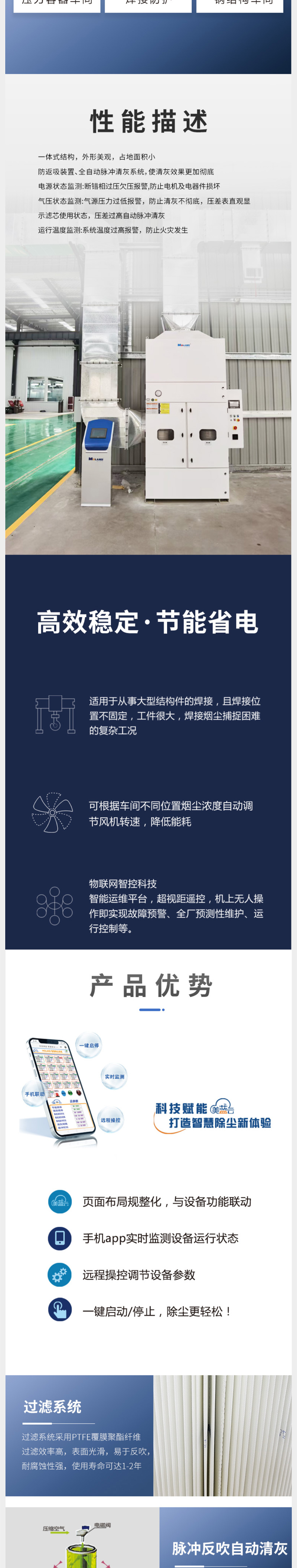 山東美藍環保科技有限公司是主營焊接車間除塵設備|等離子切割除塵器|激光切割煙塵凈化器|除塵設備廠家|集中除塵設備|工業除塵設備|打磨除塵設備|光氧廢氣處理|車間整體除塵|粉塵凈化設備|工業粉塵凈化設備|粉塵車間吸塵設備|環保設備廠家|濾筒除塵器生產廠家|打磨工作臺生產廠家|粉塵除塵設備位于山東濟南,是一家集研發、生產、銷售于一體的專業空氣凈化設備廠家。產品主要發往浙江、江蘇、上海等全國各大城市。